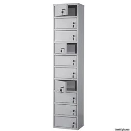 Արտաքին չափերը, մմ (HxWxD): 1400x300x220 Ներքին չափերը, մմ (HxWxD): 118x295x185 Քաշը, կգ: 16 Կողպեքի տեսակ: բանալիով Գույնը: մոխրագույն կիսա-մատ (RAL 7038) Ծածկույթը: փոշեներկ Դռների քանակը: 10 Սեկցիաների քանակը: 10 Երաշխիք: 1 տարի Արտադրող: ՊՐՈՄԵՏ Երկիր: Ռուսաստան -