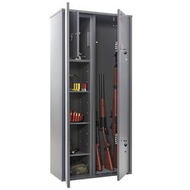 Արտաքին չափերը, մմ (HxWxD): 1400x620x280 Ներքին չափսերը, մմ (HxWxD): 1379x618x260 Քաշը, կգ. 36 Ծավալը, լ: 221 Փամփուշտի խցիկ (սկուտեղ): 400х250х225 Դարակների քանակը՝ 3 Բարելների քանակը՝ 5 Առավելագույն բարձրությունը, մմ 1370 Կողպեքի տեսակը։ երկու բանալի Գույն: գրաֆիտ (RAL 7024) Ծածկույթի տեսակը: փոշեներկ երաշխիք: 1 տարի Արտադրող: ՊՐՈՄԵՏ Երկիր: Ռուսաստան -